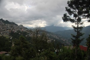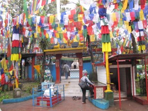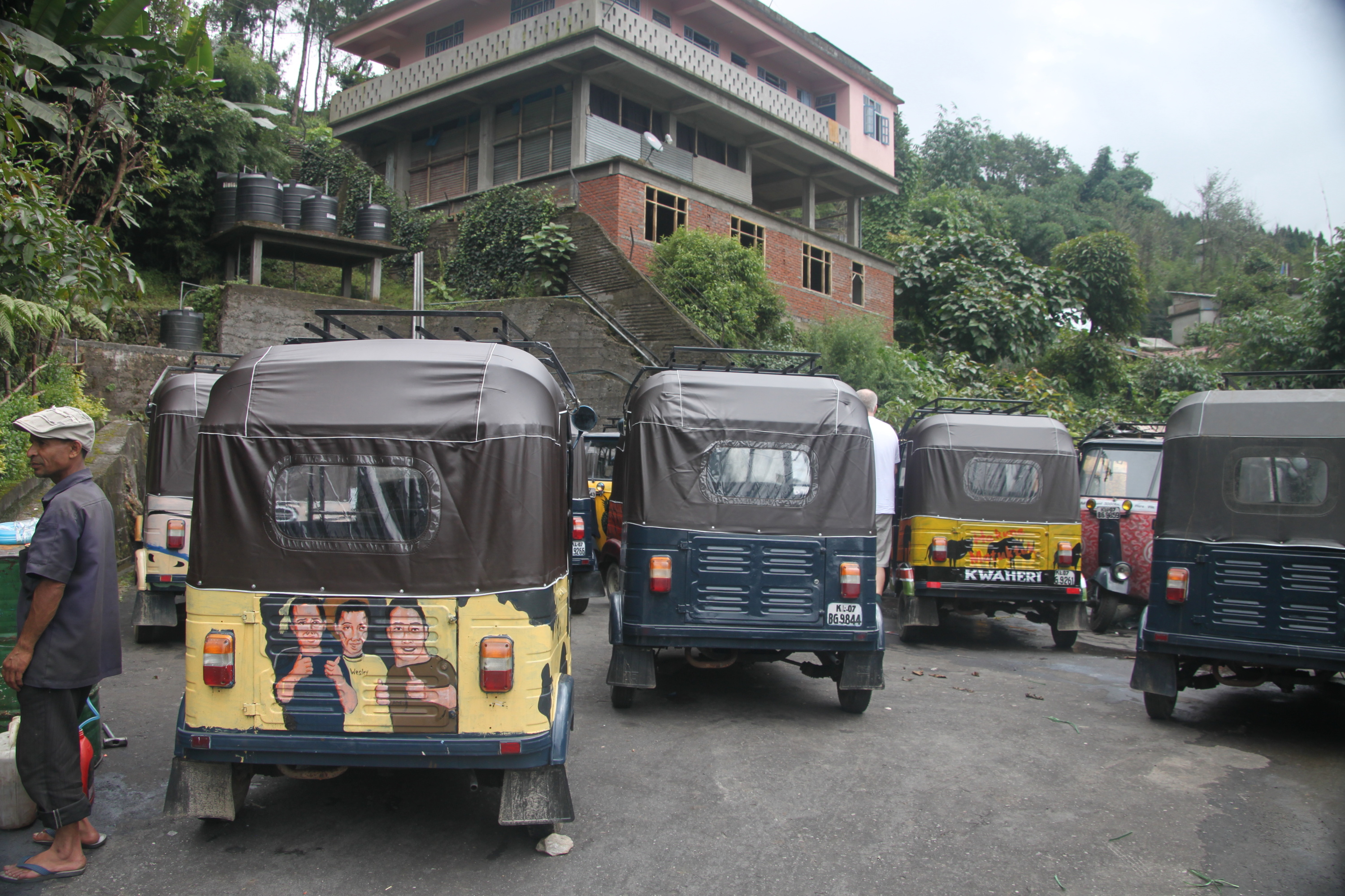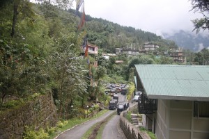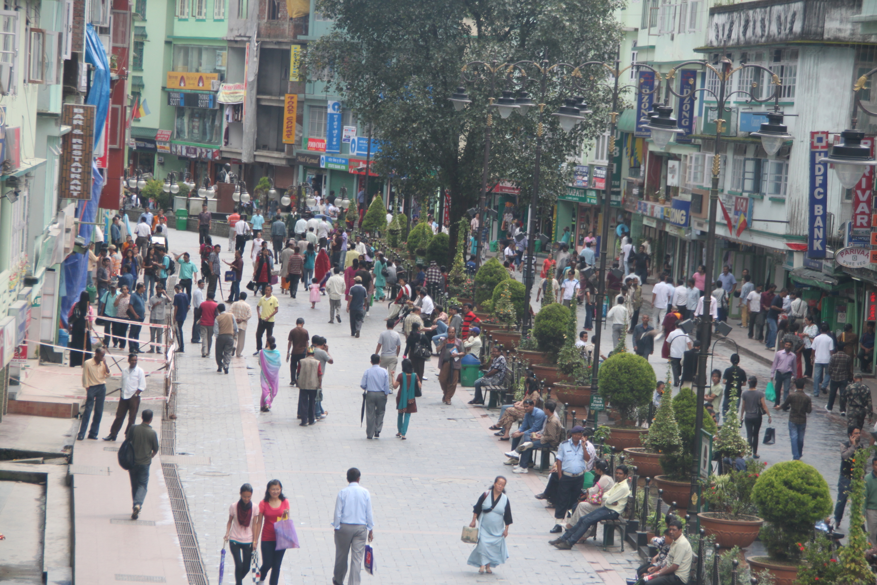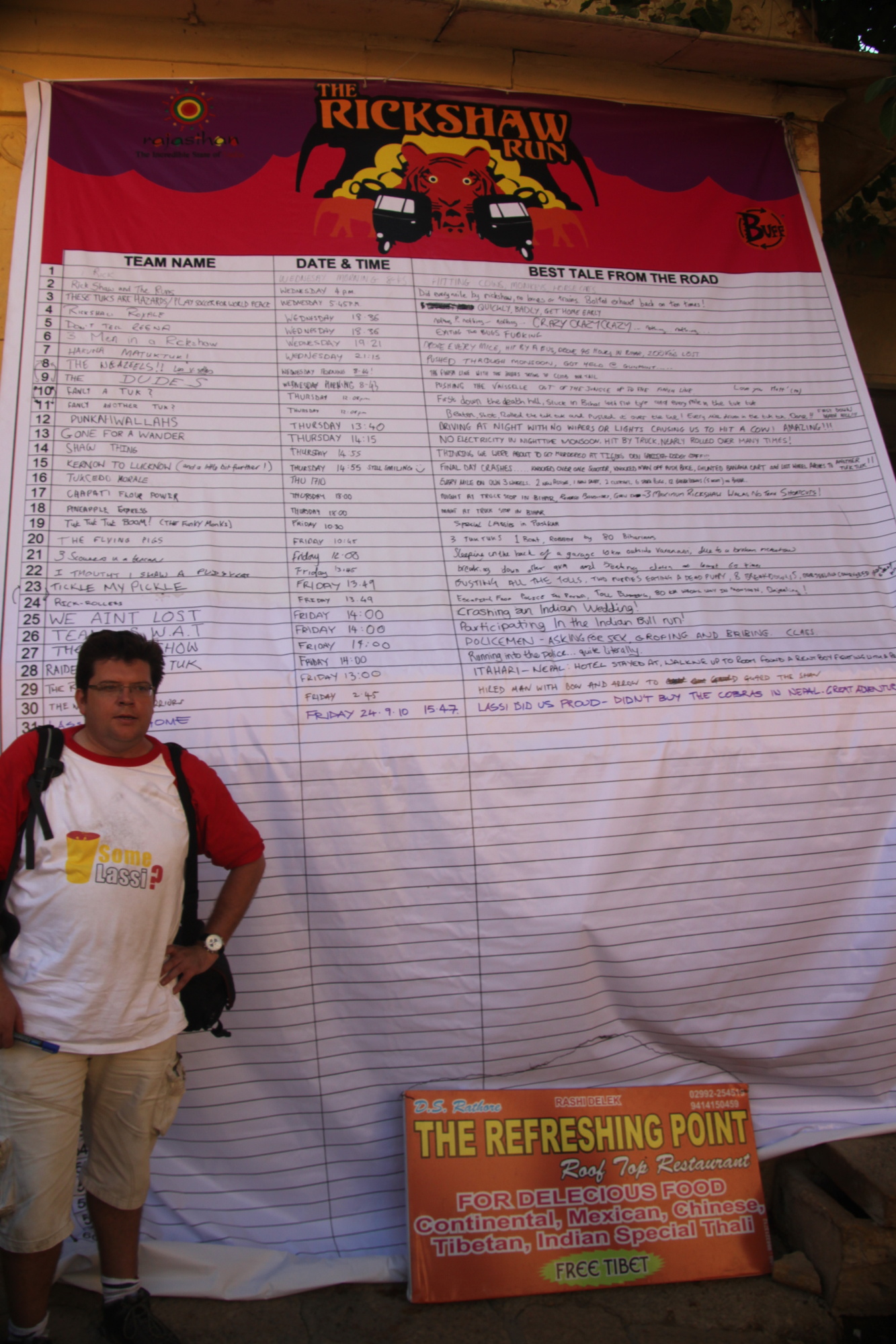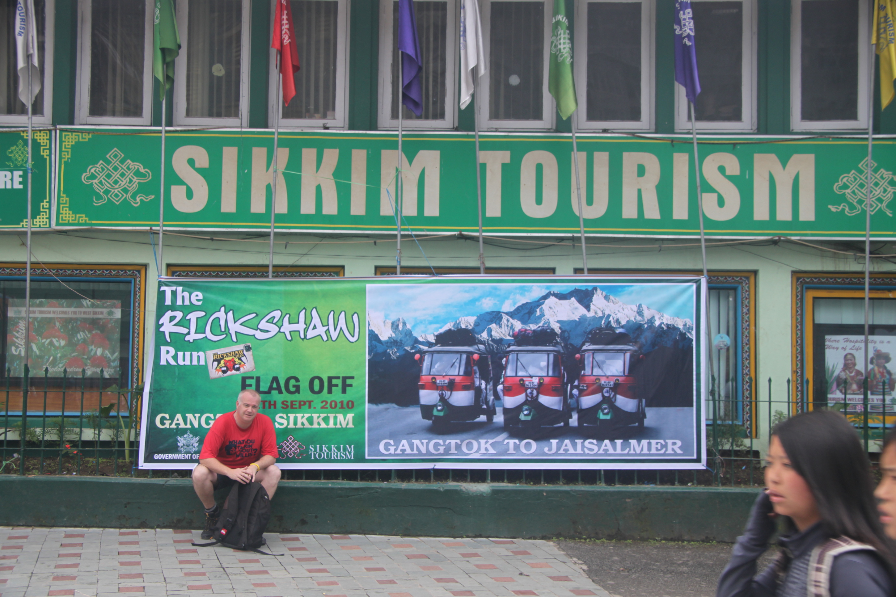 Gangtok gets ready for the Rickshaw Run (Paul next to RR sign in The Mall)