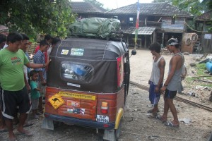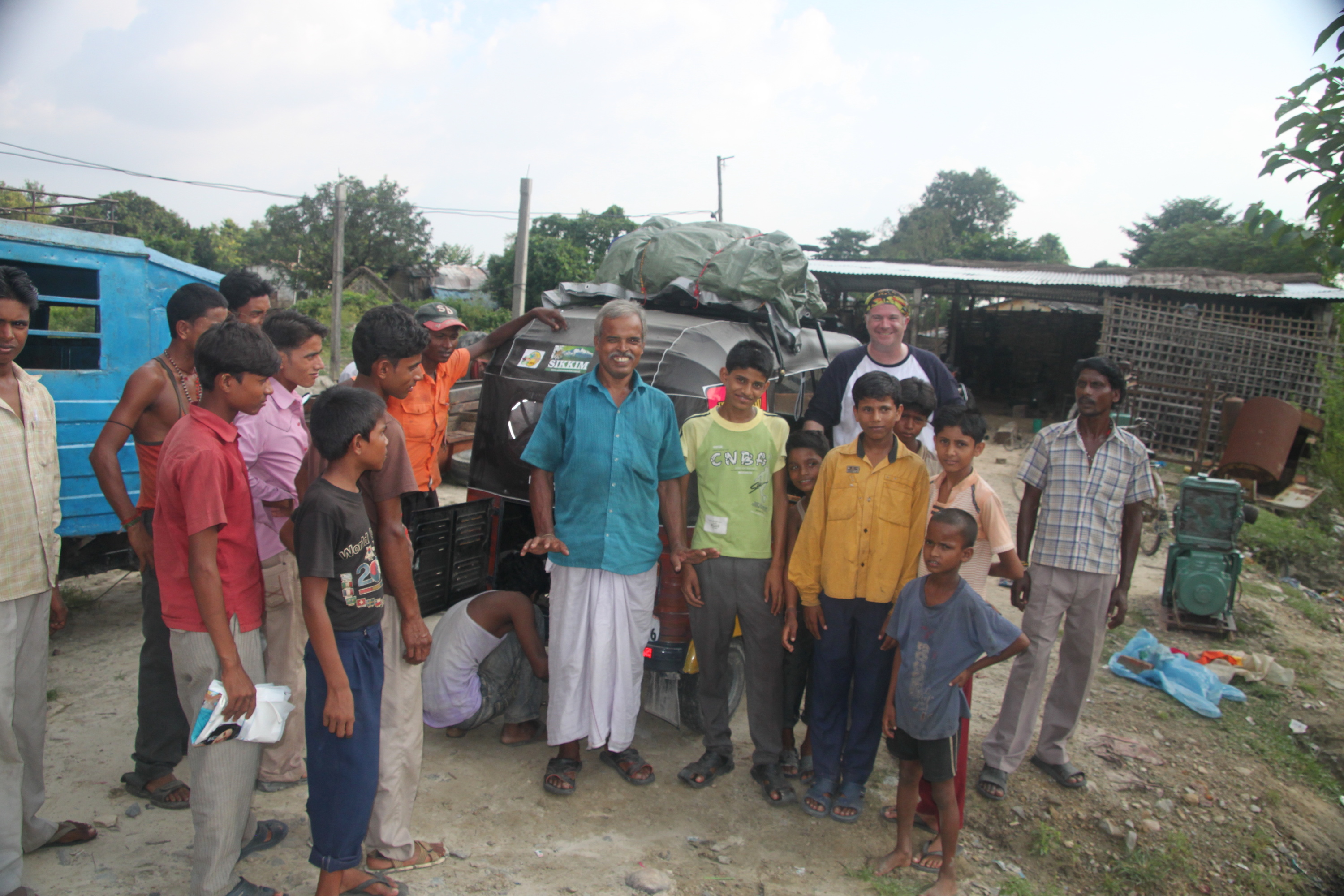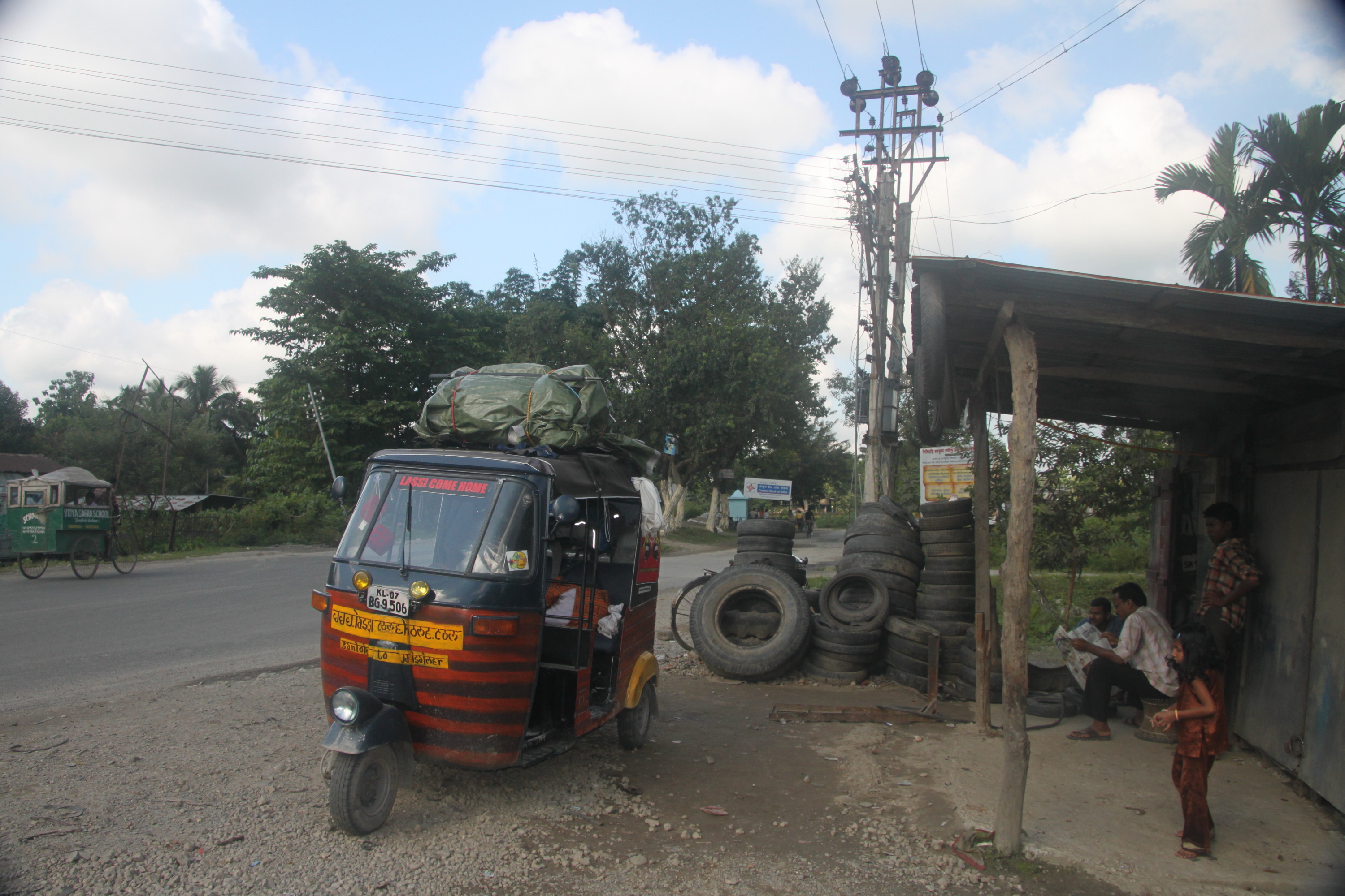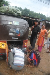 The Rickshaw getting tyre repair Day 2 (India – not far from Nepal Border)
